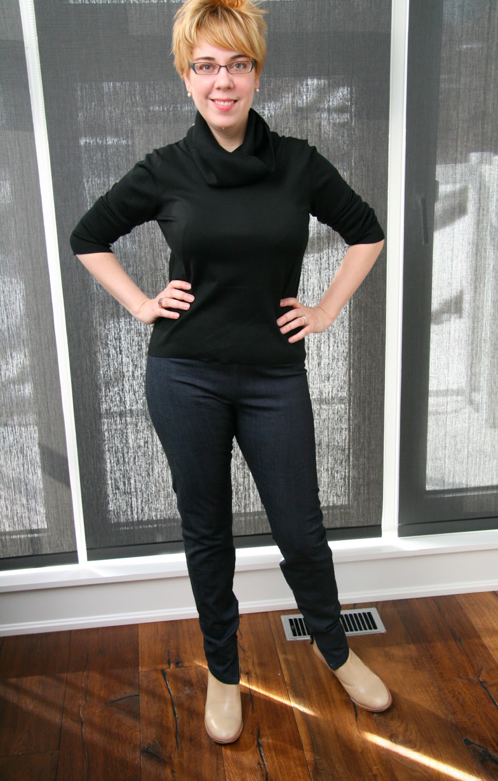 Sure, this look is modern and slouchy (like the kids these days, ahem) but I don't think that's why those pull lines are there. I sense the pull lines are a sign of suboptimal drafting. And when you're only working with 3 main pattern pieces, that's perplexing, quite honestly.